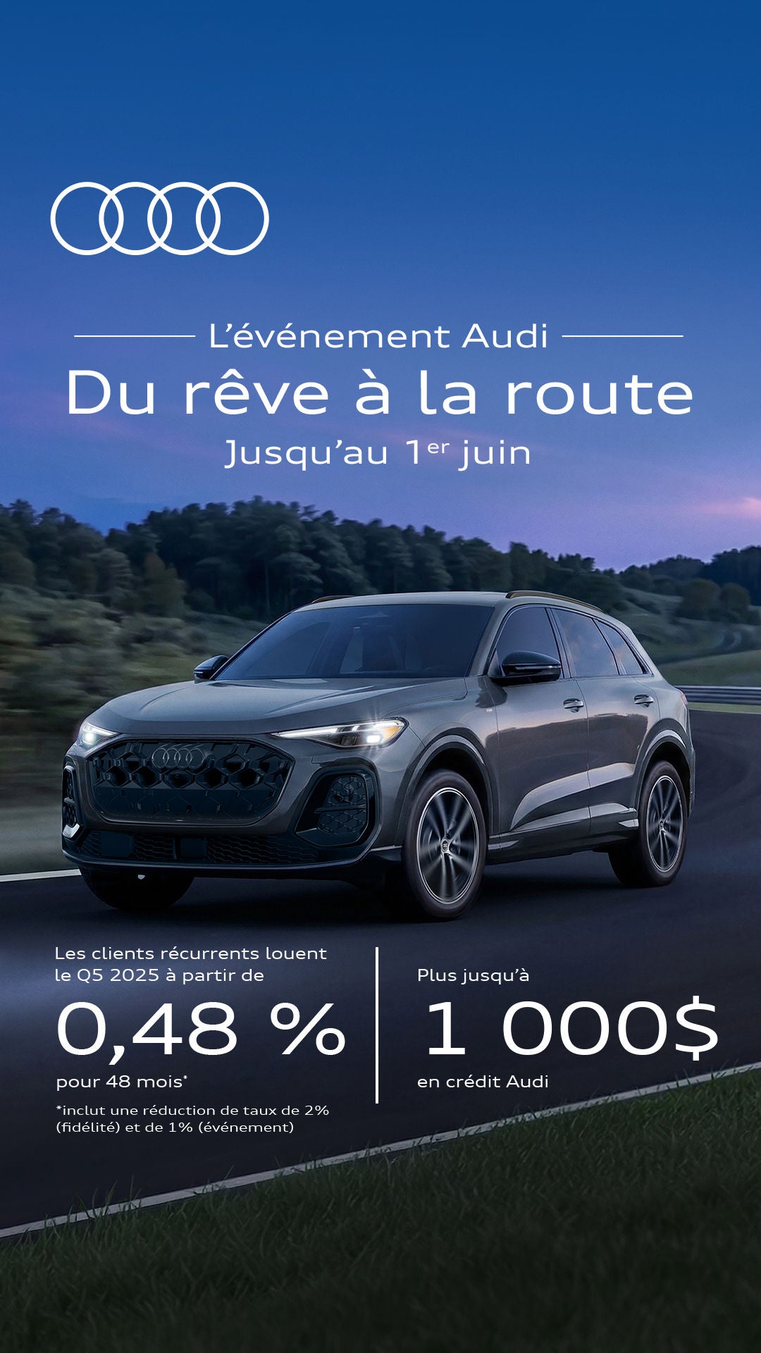 Une offre cumulable avec le 0,5 % fidélité, pour un total pouvant atteindre 1 % de réduction!